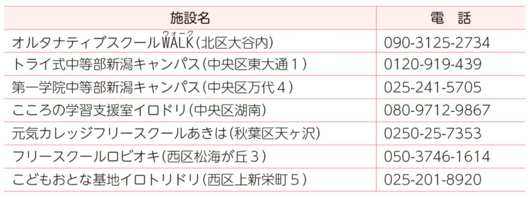 新潟市では多様な子どもたちに応じた学びの場や相談先を用意しています。ぜひ活用してください。