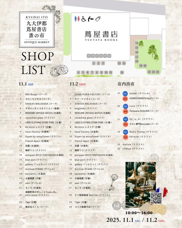 【11/1・2】暮らしを彩る雑貨たちが大集合『蚤の市Vol.2@九大伊都 蔦屋書店』(福岡市西区)【イベント】