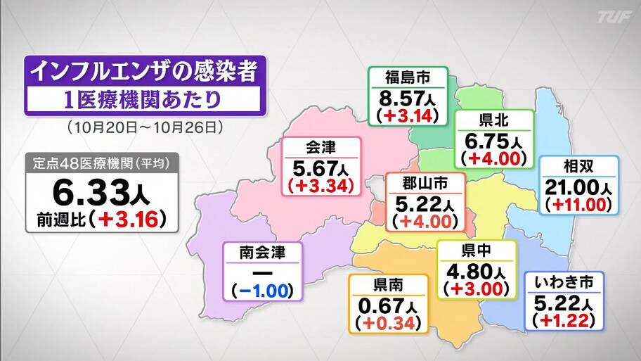 10月20〜26日の1定点医療機関当たりのインフルエンザ報告数が全県で2.05となり、流行期入りの目安である1を上回った。保健所管内別では魚沼5.00、三条3.80の順で多く、上越は1.00だった。