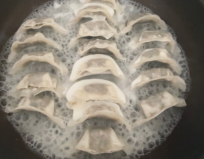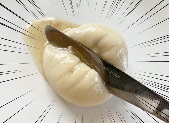 水、油、さらにフタ使用で作ることしばし。いつもと違う手順を踏んだ餃子にナイフを入れてみたところ……