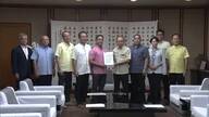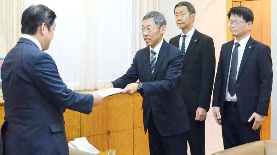 村山繁生議長と荒木美幸副議長が市議会を代表して森市長に手渡した。①被災世帯への生活支援②被災事業者の営業再開支援③代替駐車場の確保④被災状況の速やかな把握と議会への情報提供、の4項目で、村山議長は「住居の床上床下浸水、営業継続に支障をきたす店舗の被害など、市民生活や地域経済に深刻な影響が及んでいる」として、それぞれに早急な対応を求めた。