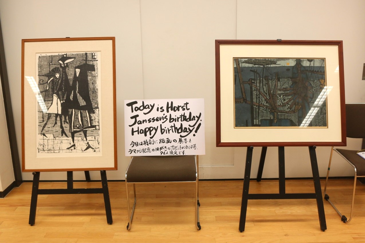 展覧会に足を運んだ本日11月14日はヤンセンの誕生日。特別に版画2点が公開され、彼の娘ラマ・ヤンセンさんが記念のカードを手渡ししていた。存命なら96歳。故郷のドイツ・ハンブルクから遠く離れた日本の地方都市で、このような展覧会が開かれていることを知ったら、さぞ喜んだことだろう。