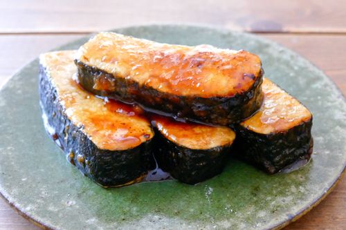 弱火にしてしょうゆ、みりん、砂糖、にんにく(すりおろし)を加え、汁気がなくなるまで返しながら両面煮絡めて完成です。