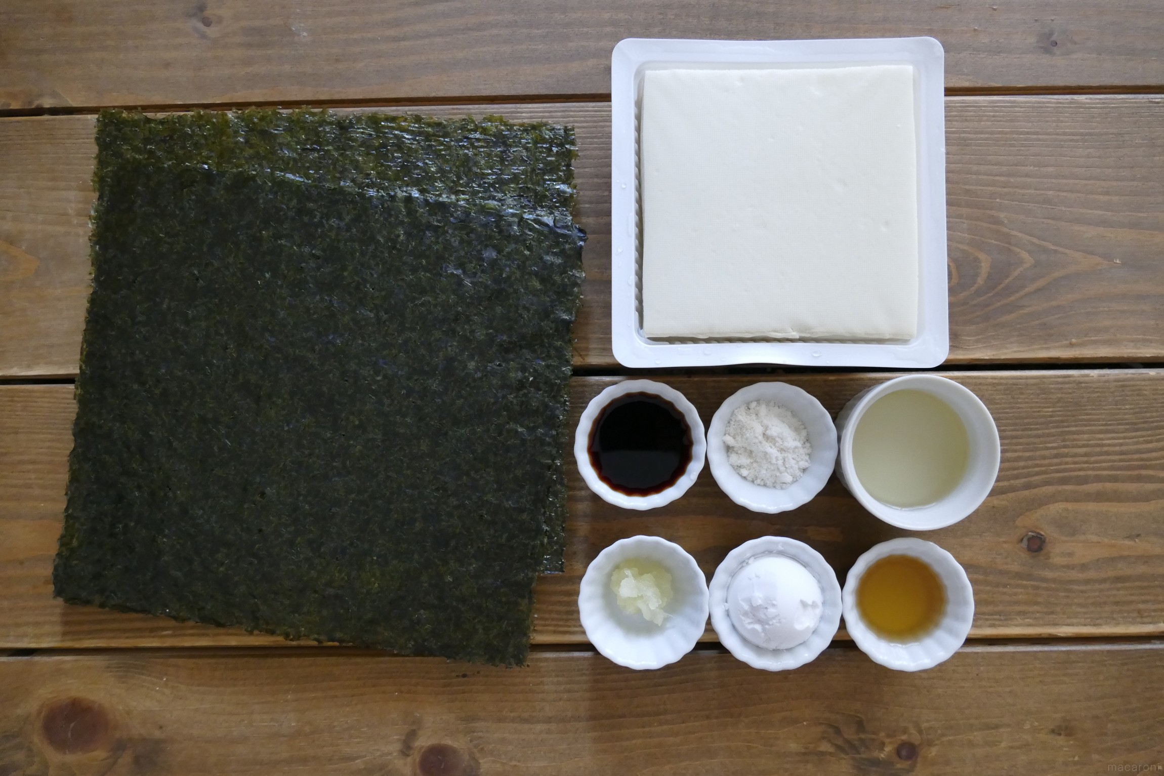 焼き海苔は縮みやすいため、木綿豆腐の幅より大きめのものを使うか重ねて使う
