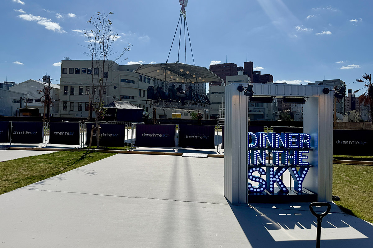 ベルギーで誕生し、これまで世界65カ国・延べ10,000回以上開催されてきた空中レストラン「Dinner in the Sky」。巨大クレーンによって地上40メートルへと吊り上げられたテーブルで、食事と絶景を同時に味わうという、とっておきの体験ができるエンターテインメントです。