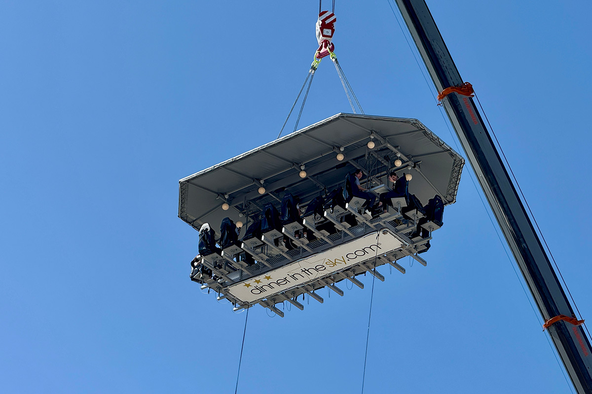 巨大クレーンで地上40メートルまで吊り上げられたテーブルで、食事と絶景を同時に味わう、まさにスペシャルな体験。今回は、編集部が一足早く体験してきました。その様子をたっぷりレポートします!
