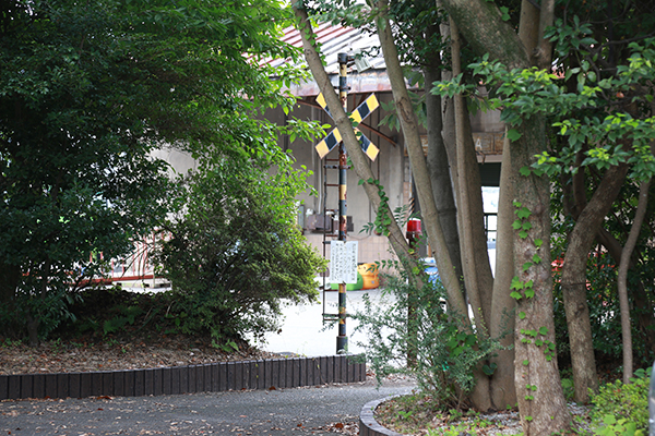 元農水省の倉庫敷地に残る踏切警報機。この前に貨物線が通っていた証拠となる。(敷地外から撮影)