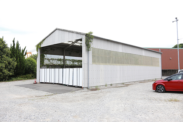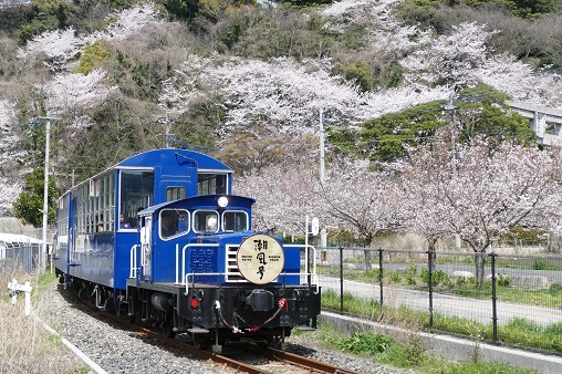 「潮風号」の車庫の横には使用されなくなったレールがあり、分岐器も残っていることから、ここが貨物線の拠点であったことが伺えます。それもそのはず、この先の田ノ浦地区にはセメント工場の他にも飼料倉庫などが軒を連ねており、全盛期には複数の専用線が分岐する臨港線が広がっていました。後年は、臨港線内にも本線牽引機であるDD51が直接乗り入れていたようですが、臨港線内用の牽引機が在籍していた時期もありました。その当時はグリーンのDD13タイプのものが配置されていたようです。実はその当時の車庫が「潮風号」の車庫の裏に残っていました。