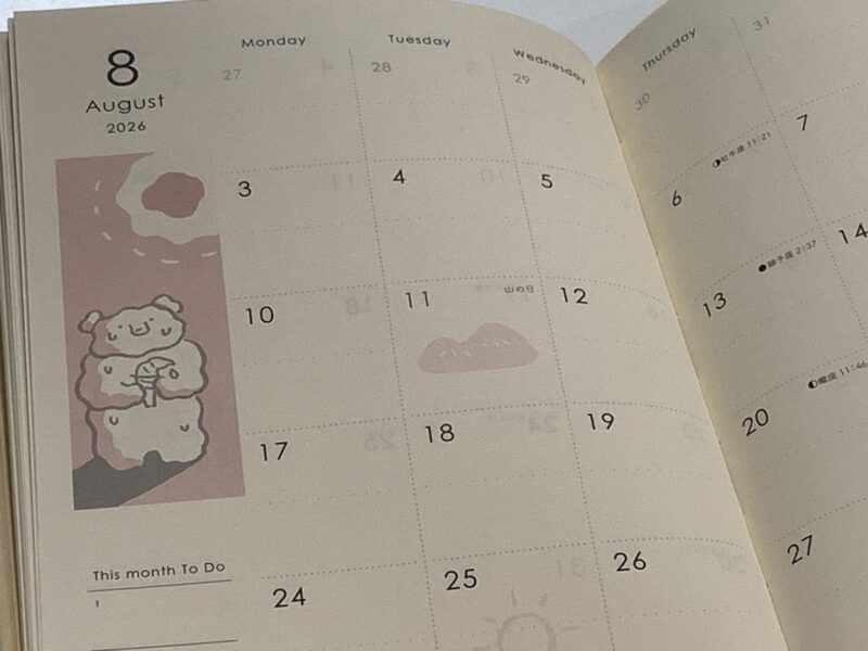 マンスリーページの挿絵もかわいい。