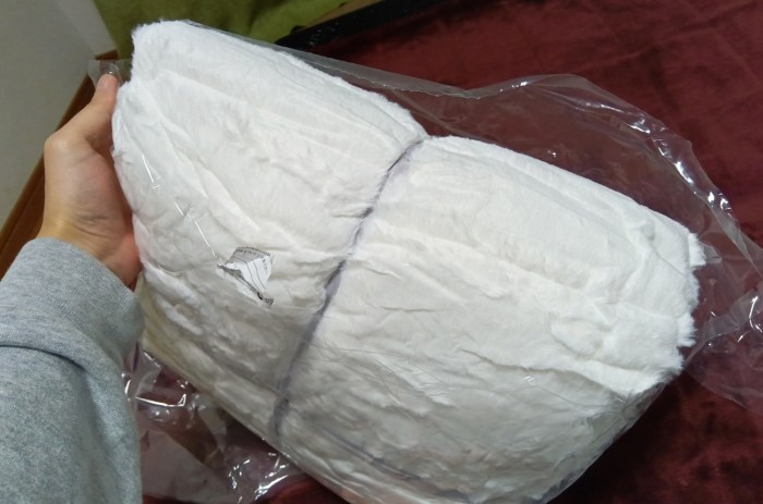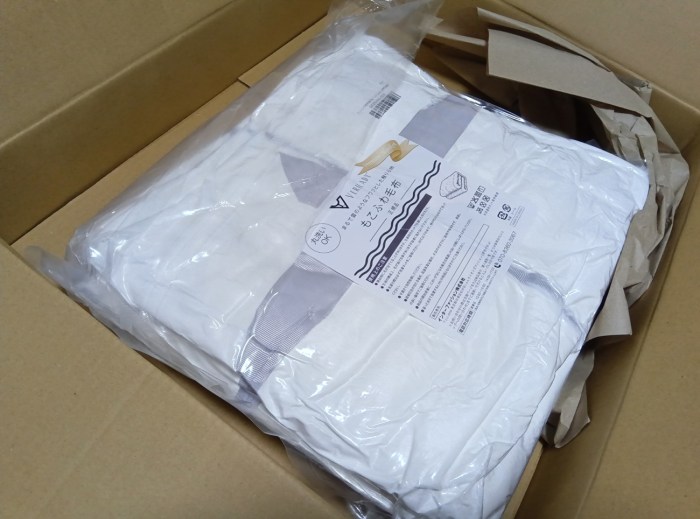 届いた毛布を見ると梱包が雑ということもなかった。真空パックで毛布にしてはコンパクトなサイズ感の箱で届くのはありがたいところ。