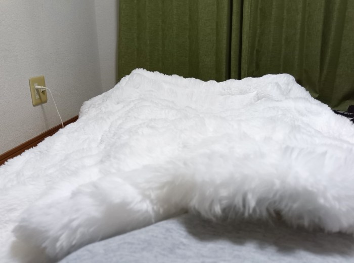 普通に暖かかった。少なくとも、2025年11月上旬に数日寝てみた感じとしてはこれ1枚で十分で、掛布団を上にかけたら暑いくらいだった。しかし、一方で、数日寝てみた結果気づいたこともある。