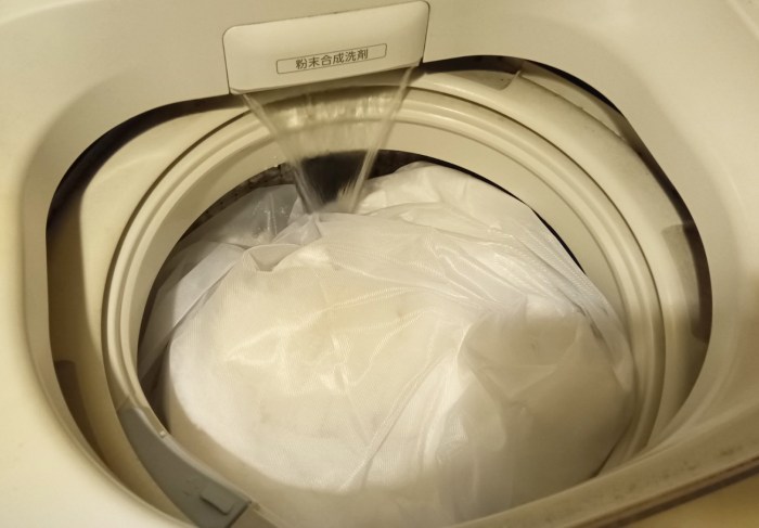 そこで洗濯ネットに入れて洗濯機にかけてみた。手心なしで洗濯機を回す。洗濯ネットが毛だらけにならなきゃいいなあ。ゴウンゴウン。