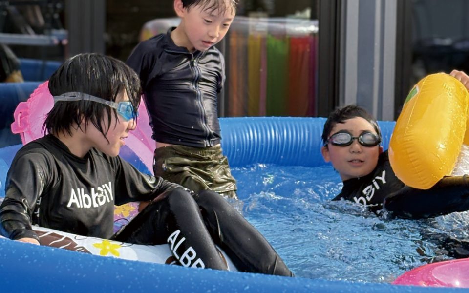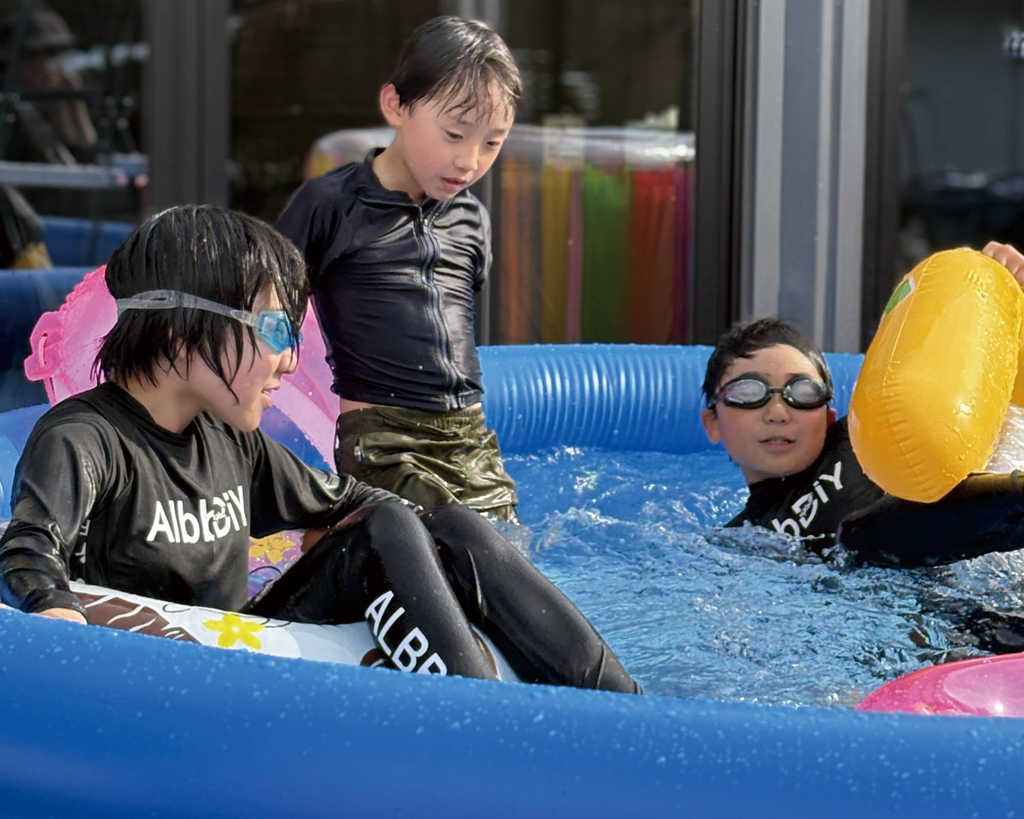 直径3mの大型プールで、ゴーグルをつけて思いっきり水遊びを満喫。【料金】利用料:デイ利用 8,000円(1/3室)・20,000円(1棟)、宿泊平日 30,000円~、土・日曜・祝日・GW・お盆・年末年始など50,000円~ ※食事代は別料金