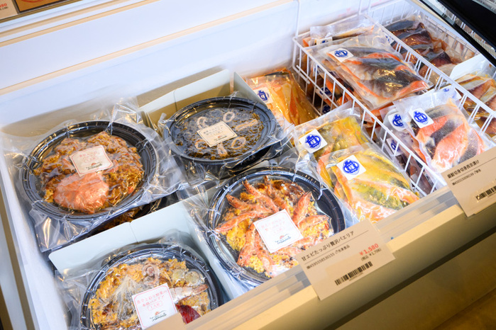 店内には、魚介類を使用した冷凍食品やお惣菜も充実。