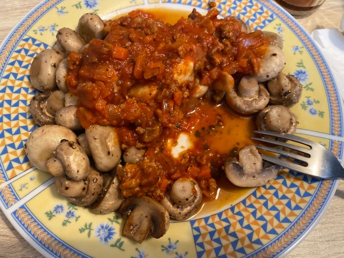 マッシュルームのミートソースがけ。