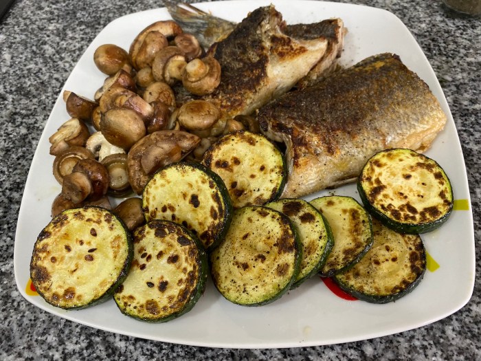 白身魚とズッキーニとマッシュルームの素焼き。