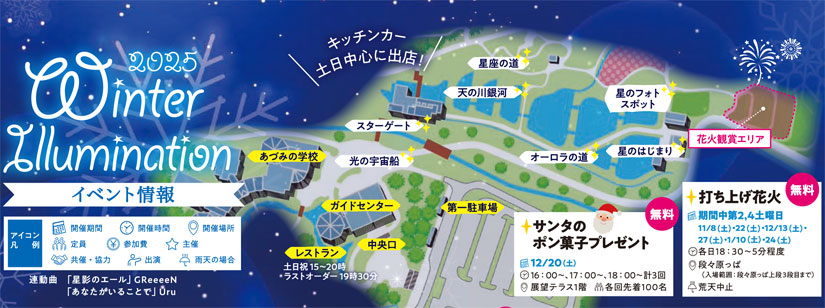 2025年11月1日(土)から2026年1月31日(土)まで長野県安曇野市の「国営アルプスあづみの公園 堀金・穂高地区」で、県下最大級の『Winter Illumination 2025星のすべて~All of the Stars~』が開催。