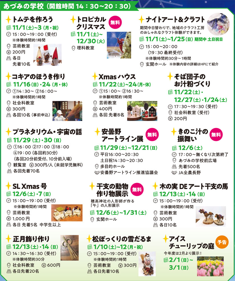 ・会場:野の休憩所前(荒天時はあづみの学校 玄関ホール)