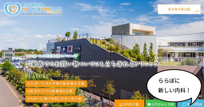 アイキャッチ引用元:『立川立飛こばやし内科・消化器内視鏡クリニック ららぽーと立川立飛』公式サイト( https://www.k-naishikyo.com/lalaportclinic/ )(以下画像全て同ソースより引用)