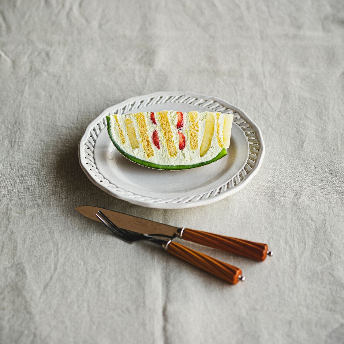 フルーツまるごと。ケーキまるごと。食いしん坊にとって、どちらもうっとりする言葉。幼い頃から、好きなものを“まるごと”食べることに、どれほど憧れたことか! 大人になって、夢にまで見たケーキが目の前に現れたとき、「わあっ」と歓喜の声がこぼれました。世界初のメロンケーキ職人・加藤幸樹さんが作る「まるごとメロンケーキ」は、フルーツをまるごと1つ使ってケーキと組み合わせた、なんとも贅沢なスイーツです。