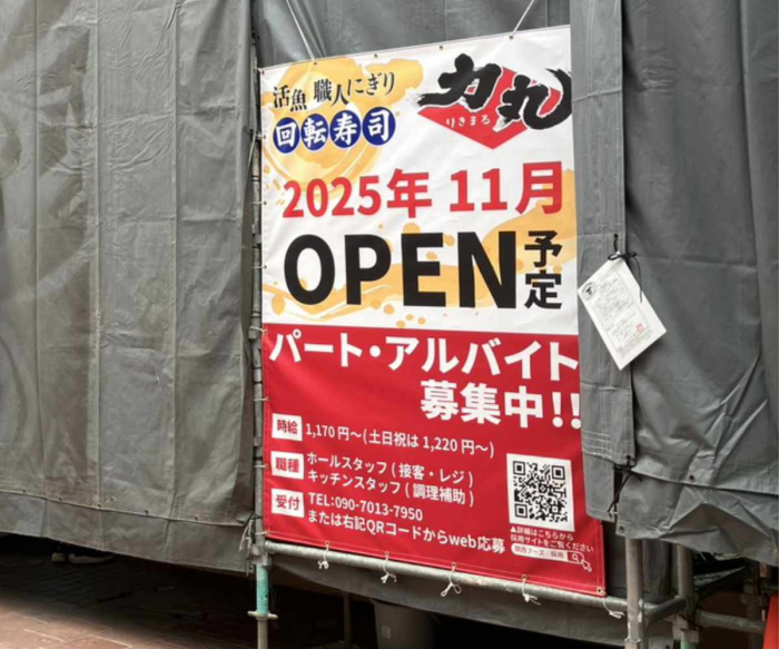 神戸元町商店街に、『回転寿司 力丸 神戸元町店』(神戸市中央区) が11月後半(予定)にオープンします。