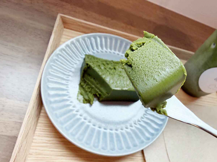 こちらは一番人気だという「濃厚抹茶テリーヌショコラ」。生チョコのような口溶けで濃厚な抹茶の味わい。フランス産のクーベルチュールチョコを使用しているそうで、苦すぎず甘すぎずなバランスが絶妙でクセになりそうな美味しさです!
