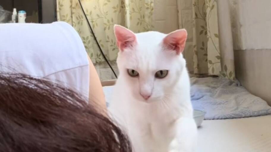 子猫はまだ小さく、毛はぱやぱや。どこか頼りない表情をしていたとのこと。耳の外側と鼻の周辺の色が黒っぽく、他はほぼ白い毛色だったそうです。このまま大人になるのかな、と思いきや…?