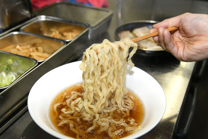 中華そばはスープをよく吸うタイプのやや低加水の細麺を使用。麺の食感もよく食べやすく仕上がっています。
