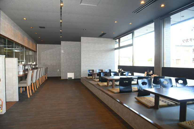 広々とした店内にはカウンター、テーブル、小上がりとさまざまなニーズに対応した席を用意。