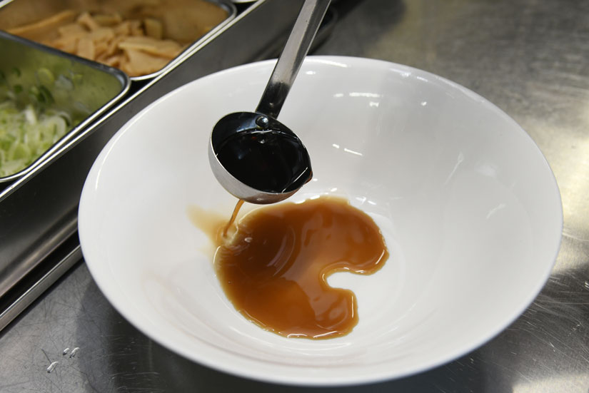 「丸正醸造」の3種の醤油+上質な「三河みりん」がかえし。あわせる油は鶏油に加え、豚のラードを足すことによりマイルドな風味に仕上げています。