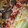 2. 鍋に【A】を混ぜ合わせ、【1】の豚肉、キャベツ、たまねぎを加えて中火で煮る。キャベツが柔らかくなったら牛乳を加え、沸騰する直前で火を止める。器に盛り、細ねぎ、七味とうがらしをふる。