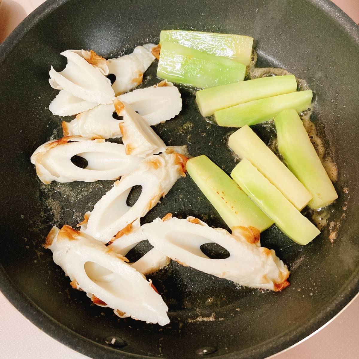 ちくわが1本残っていたので、バターを使った炒め物に挑戦しました。