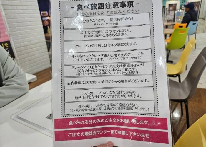 制限時間は60分。1つ完食するごとに新しいクレープを注文できるシステムとのことだ。