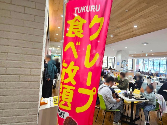 そんなクレープの食べ放題は、MEGAドン・キホーテ港山下総本店の2階にある『クレープハウスTUKURU』という名のお店が実施している。