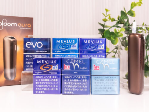 そこで今回は「プルーム・オーラ」と「プルーム・キューブ」内蔵の、JT独自の新加熱技術「SMART HEATFLOW(スマート・ヒート・フロー)」の実力とともに、「エボ(EVO)」「メビウス(MEVIUS)」「キャメル(CAMEL)」からレギュラー系スティックのみをピックアップして味わってみたいと思います。