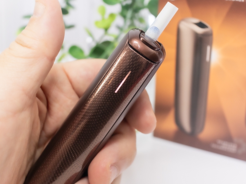 もちろんいつも愛用しているカラーの機種で楽しんでも良いのですが、今回は2025年11月11日より順次、CLUB JTオンラインショップ及び全国のPloom Shop等にて数量限定で発売した、オーク材でできているかのような渋い色合いの限定カラーモデル、JT『プルーム・オーラ(Ploom AURA)ブロンズロイヤル』(税込2,980円・2025年11月11日数量限定発売)を入手できたので、使用しています。