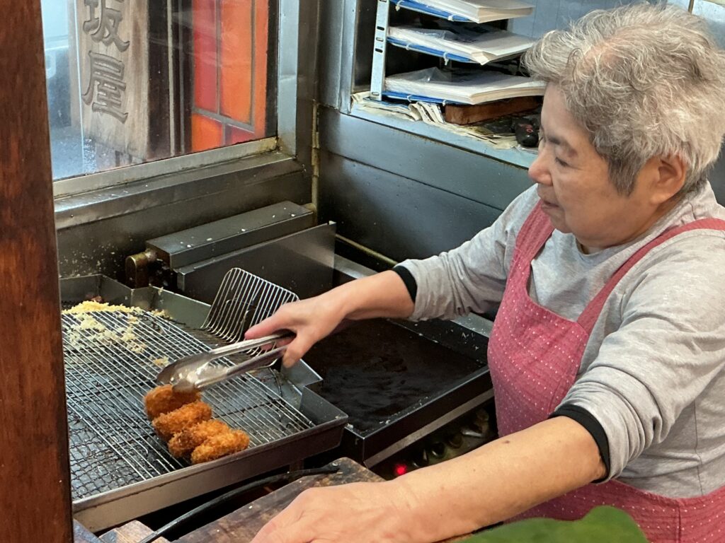 「お馴染みの男しゃくコロッケは創業時から、お陰様で愛され続けています。もっとも、新作や季節の揚げ物にも力を入れています」