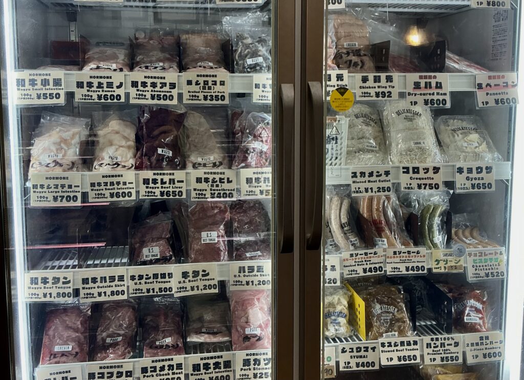 さらに、店内右手の縦型の大きなフリーザーには主にホルモン類がギッシリ。春巻きやロールキャベツなどの惣菜類もあります。これは松井さんのお母様メインで手作りされている、もちろんの人気商品です。