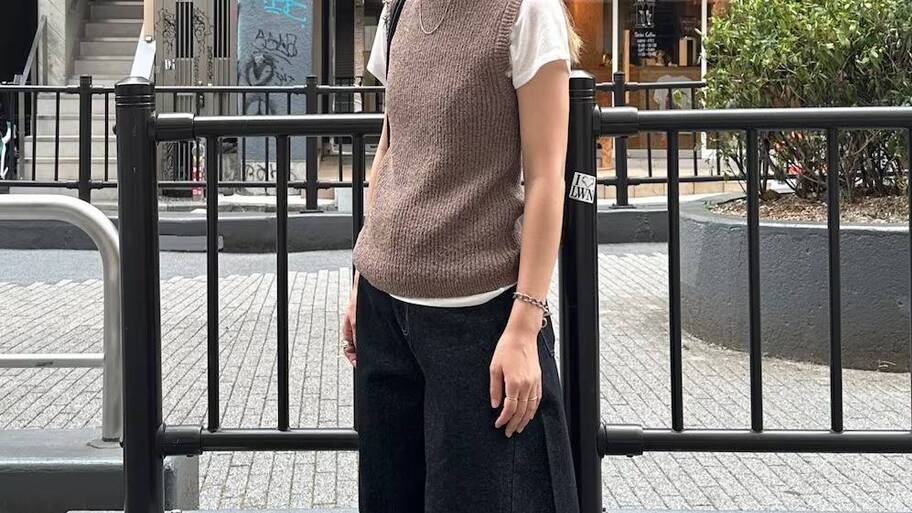 【初秋編】細く見えるワイドパンツコーデ①スキッパーデザインのニットを合わせる!