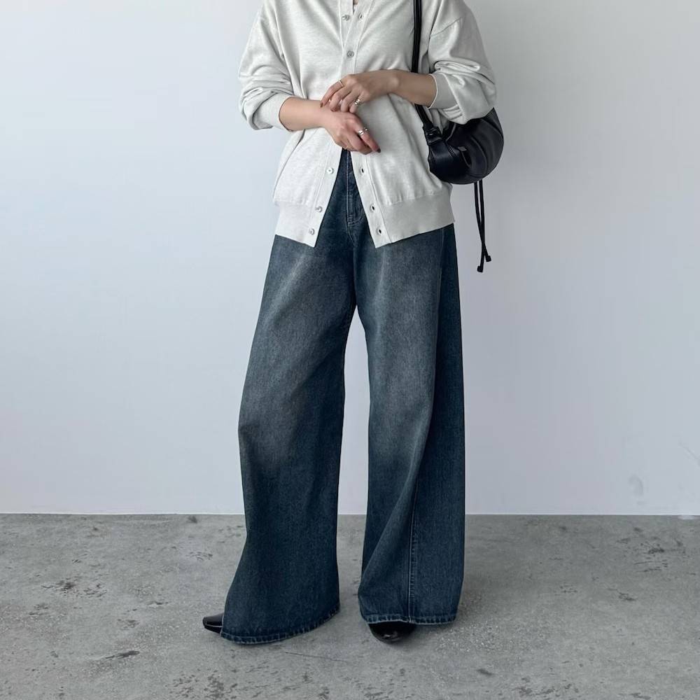 ウォッシュド加工がまるでヴィンテージアイテムのようでおしゃれなデニムパンツは、ワイドシルエットを選ぶと今っぽいですよ♪