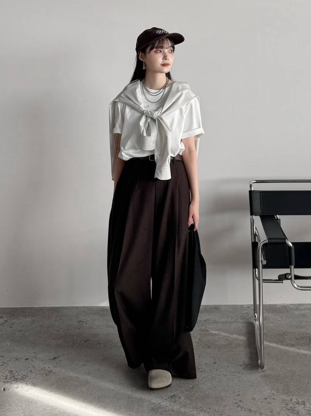 【初秋編】細く見えるワイドパンツコーデ②シャツを肩掛けする♪