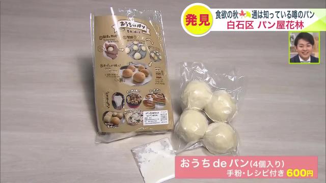 1次発酵まで終わっていて、あとは形を作って焼くだけというパン生地を販売。「おうち de パン(4個入り)手粉・レシピ付き」は600円。