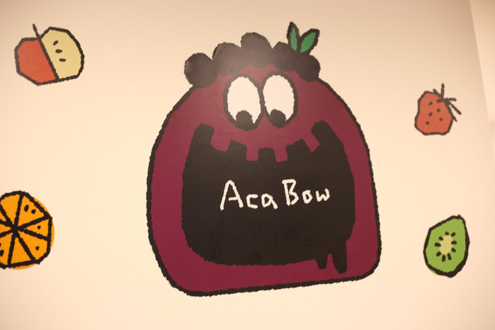 店内は明るく可愛らしい雰囲気で、壁にはマスコットキャラクターやフルーツのイラストが描かれていて、思わず購入したアサイーボウルと一緒に写真を撮りたくなります。