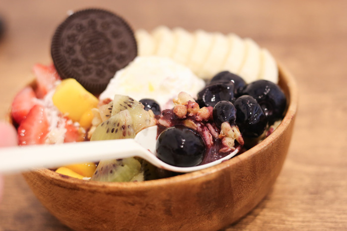 スプーンを入れるとしっかりと重みを感じるほど濃厚で、栄養価の高いアサイー本来の風味をしっかりと味わえます。