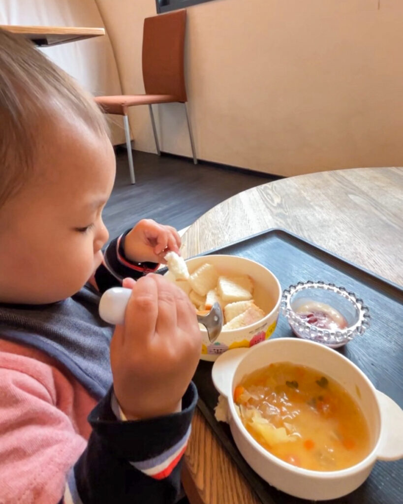 パンを小さくカットしていただいたり、キッズカトラリーもあって、子連れにはありがたいサービスばかり。