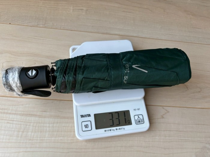 調べたところ、折り畳み傘の一般的な重さは250~300gで、超軽量なものは70g程度。防災用として持ち運ぶには、これは結構重いのでは……?