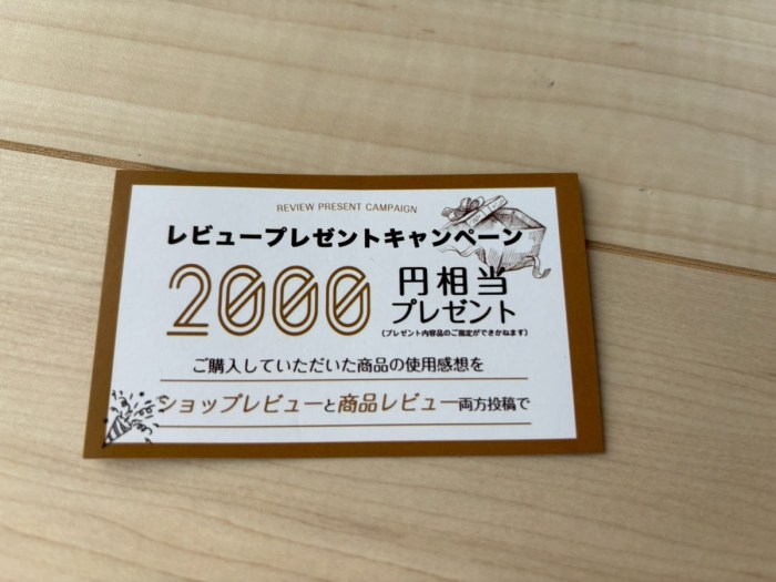 「口コミ投稿で2000円相当のプレゼント」ということらしい。もしかして、こちらが本命なのでは? と淡い期待を抱きつつ、正直に口コミを投稿してみることに。