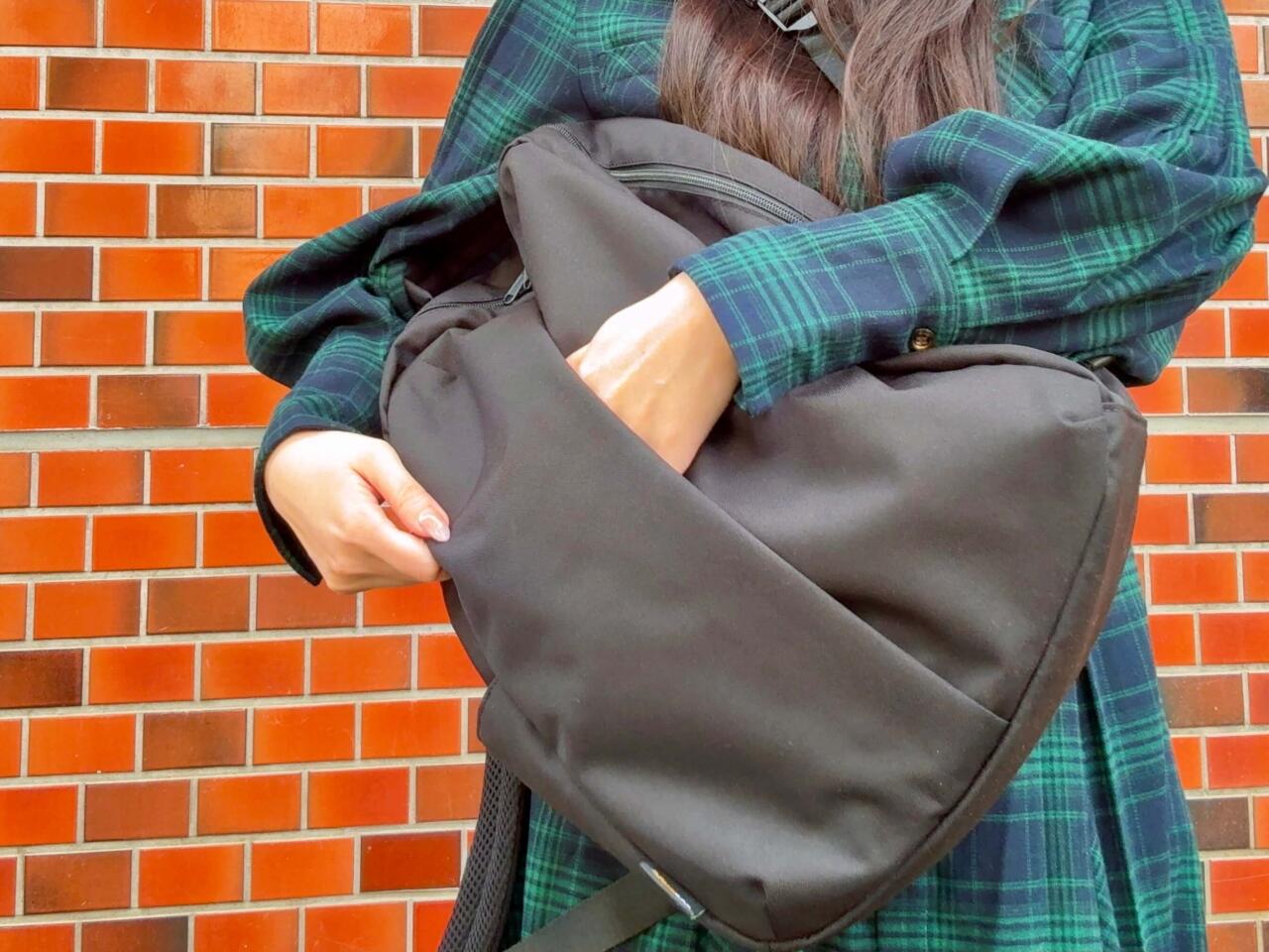 また、バックのファスナー付きポケットは貴重品を入れるのもおすすめです。