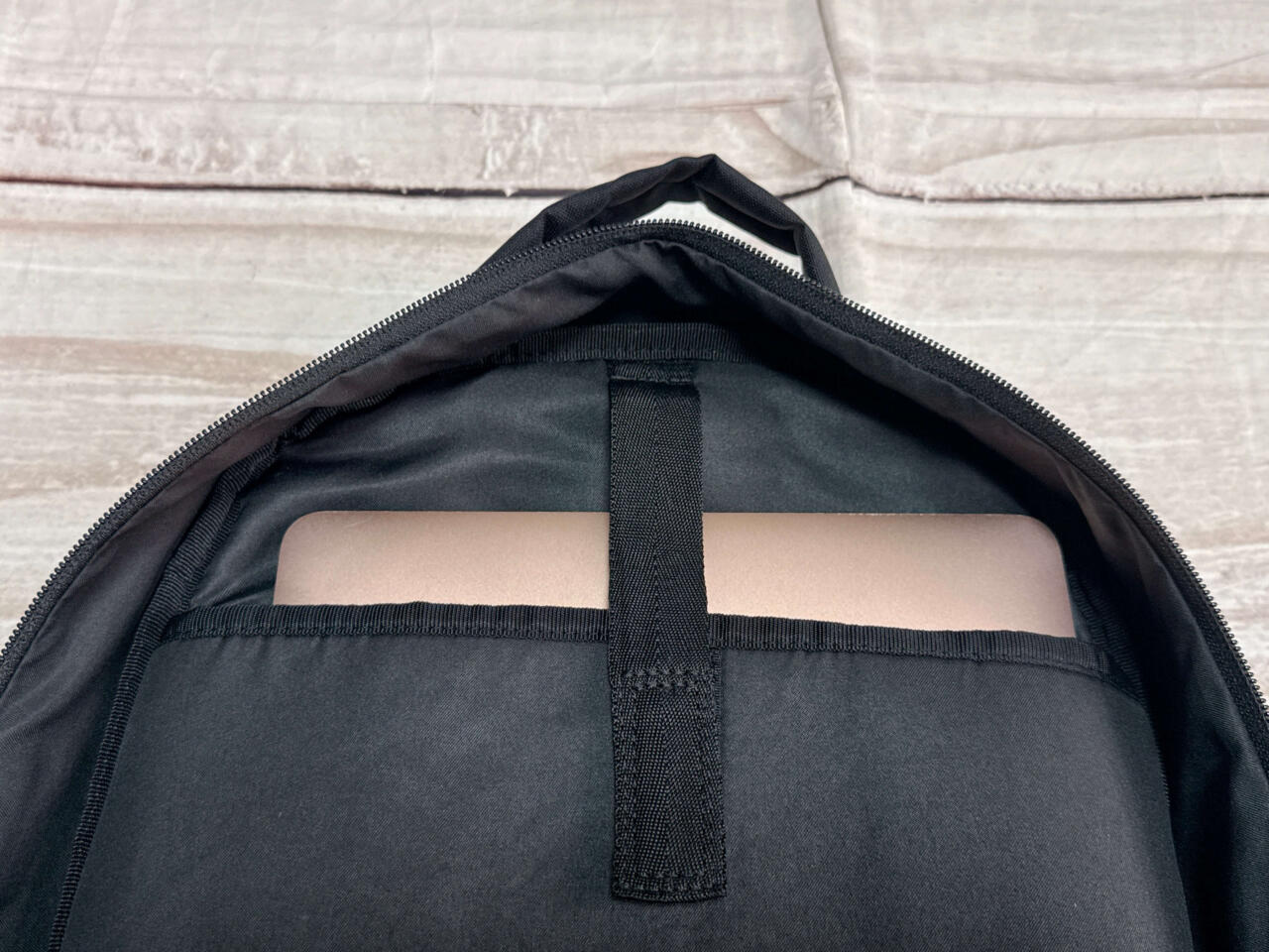 13インチのMacBook AirはPCポケットにイン。ストラップ付きでしっかり固定されます!