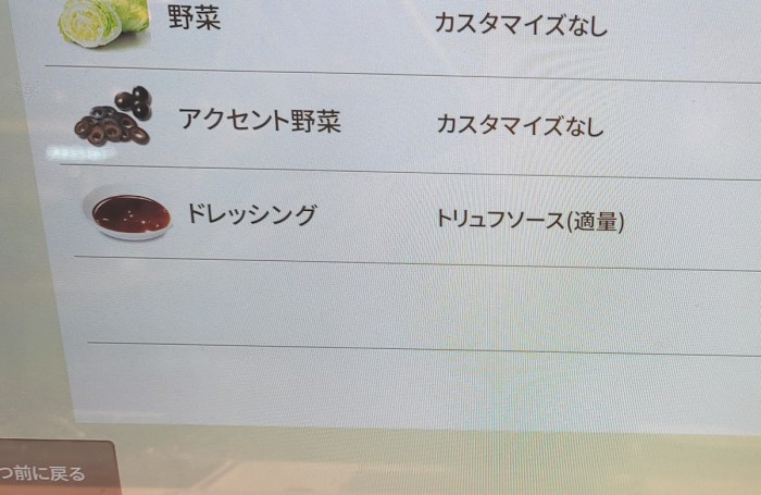 が、そこではたと目に留まったのが、ドレッシングの項目である。「トリュフソース(適量)」の文字列は、その量を増やせることを示唆していた。じっと画面を見つめ、黙考し、一つの問いに至る。「この端末の言う適量は、本当に適量なのか」と。